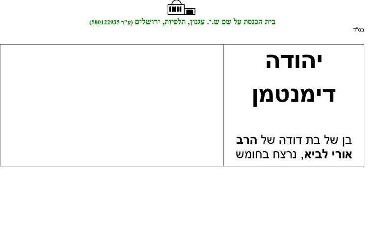 רשימת הנופלים, בני משפחתם של חברי קהילת בית הכנסת זכרונם לברכה:
