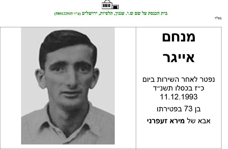 אליעזר שלזינגר, נדקר למוות ע"י מחבלת בגן סאקר, בן דוד שני של חגית לביא