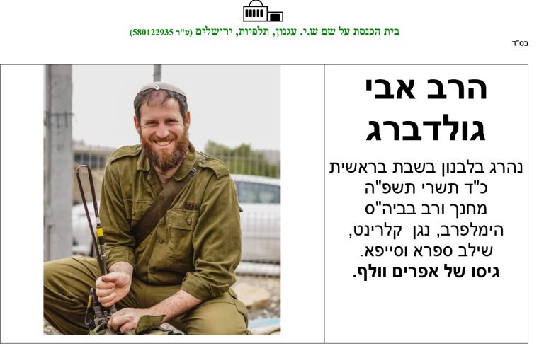 אברהם יעקב (יענקל) גולדברגר, בן חנה ואריה-לייב, נפל ביום י"ג באדר ב' תש"ח (24.3.1948), כאשר הוביל שיירה עם תגבורת לעטרות. בן 52 בנופלו. דוד גדול של שרה הרשקוביץ